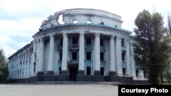 История этого девятиэтажного дома поражала ещё в 2014 году. Он находится у самого выезда из города, и ещё год назад его верхняя часть была полностью снята снарядами – тогда как тут же, этажом ниже, в вечернее время можно было заметить светящиеся окна, в которых люди спокойно ужинали. Сейчас разбитую часть дома удалось отстроить, однако сам дом всё ещё стоит в многочисленных следах от осколков.