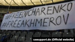 Уже десятки украинских футбольных матчей прошли под лозунгом «Свободу Овчаренко и Ахмерову». Своих в беде не бросают, говорят представители луганского ультрас-движения «Чорно-білі», которые опубликовали обращение к другим фан-движениям с просьбой поддержать их побратимов.