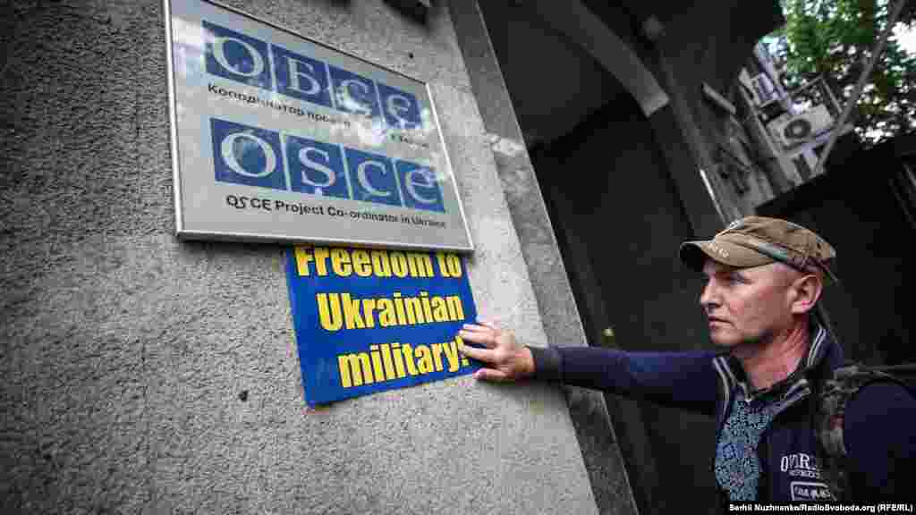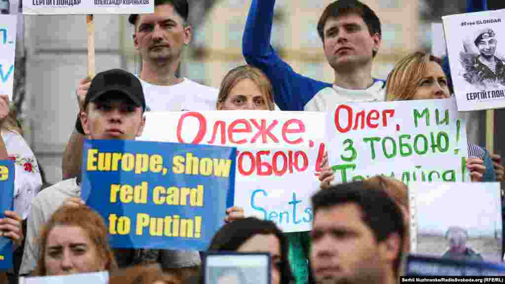 Ігор Котелянець (прапор на плечах), брат в'язня Кремля Євгена Панова і Петро Виговський (праворуч) ‒ батько Валентина Виговського, якого викрали у вересні 2014 року в Криму. У грудні 2015 року Московський обласний суд виніс вирок ‒ 11 років позбавлення волі за шпигунство на території Росії