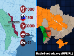 Небезпеку становлять і «збройні сили» Придністров’я. Чисельний склад – близько 10 тисяч осіб. З них 1,5 тисячі – російські військові. Крім того, близько 30 тисяч резервістів.