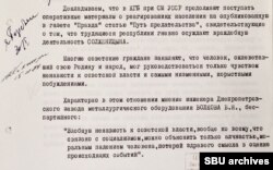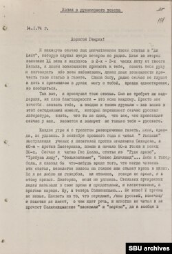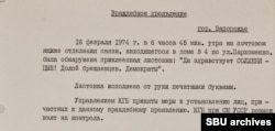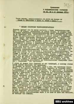 У поштову скриньку запорізького відділення зв’язку кинули листівку з лаконічним текстом: «Хай живе Солженіцин! Геть брежнівців. Демократи».
