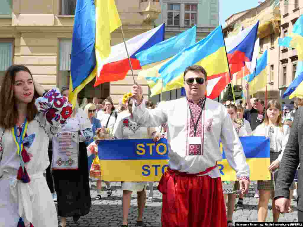В акції взяли участь українці, які давно живуть у Чехїі, а також – тисячі біженців, жінки і діти, які змушені були покинути Україну, рятуючись від війни.