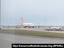На злітній смузі на літак очікували машини швидкої допомоги, автобуси та люди в захисних костюмах.