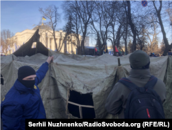 Згодом демонстранти розпочали ставити намети на проїжджій частині поблизу будівлі парламенту.