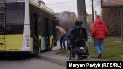 До супермаркету від реабілітаційного центру – дві зупинки громадським транспортом, а саме тролейбусом. Їхати у кріслі колісному нерівним тротуаром, переходячи кілька доріг, долаючи бордюри – йому надто важко, можна й перевернутись.