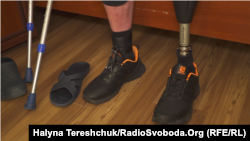 Руслан Марущак вправно вдягає протез на ліву ногу, яку втратив повністю на війні. А праву тоді медики врятували і відмовились ампутувати. Хоч, розповідає, нога була дуже травмована.