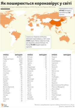 Як поширюється коронавірус у світі (стан на 2 березня 2020 року) – інфографіка