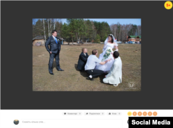 На одну з весільних фотографій навіть «дофотошоплено» Володимира Путіна з Дмитром Медведєвим.