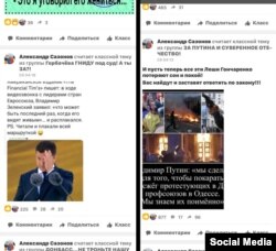 Сторінка Сазонова заповнена репостами зі сторінок, де хвалять Путіна і глузують із Зеленського.