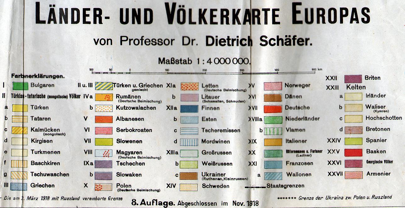 Додаток до карти країн і населення Європи професора Дітріха Шефера, 1918 рік. (Щоб відкрити додаток у більшому форматі, натисніть на зображення. Відкриється у новому вікні)