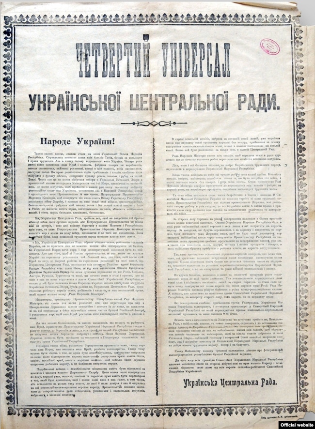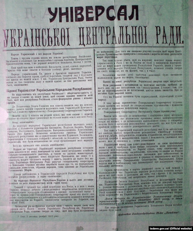 22 січня 1918 року ІV Універсал Української Центральної Ради (УЦР) проголосив самостійність Української Народної Республіки (УНР).